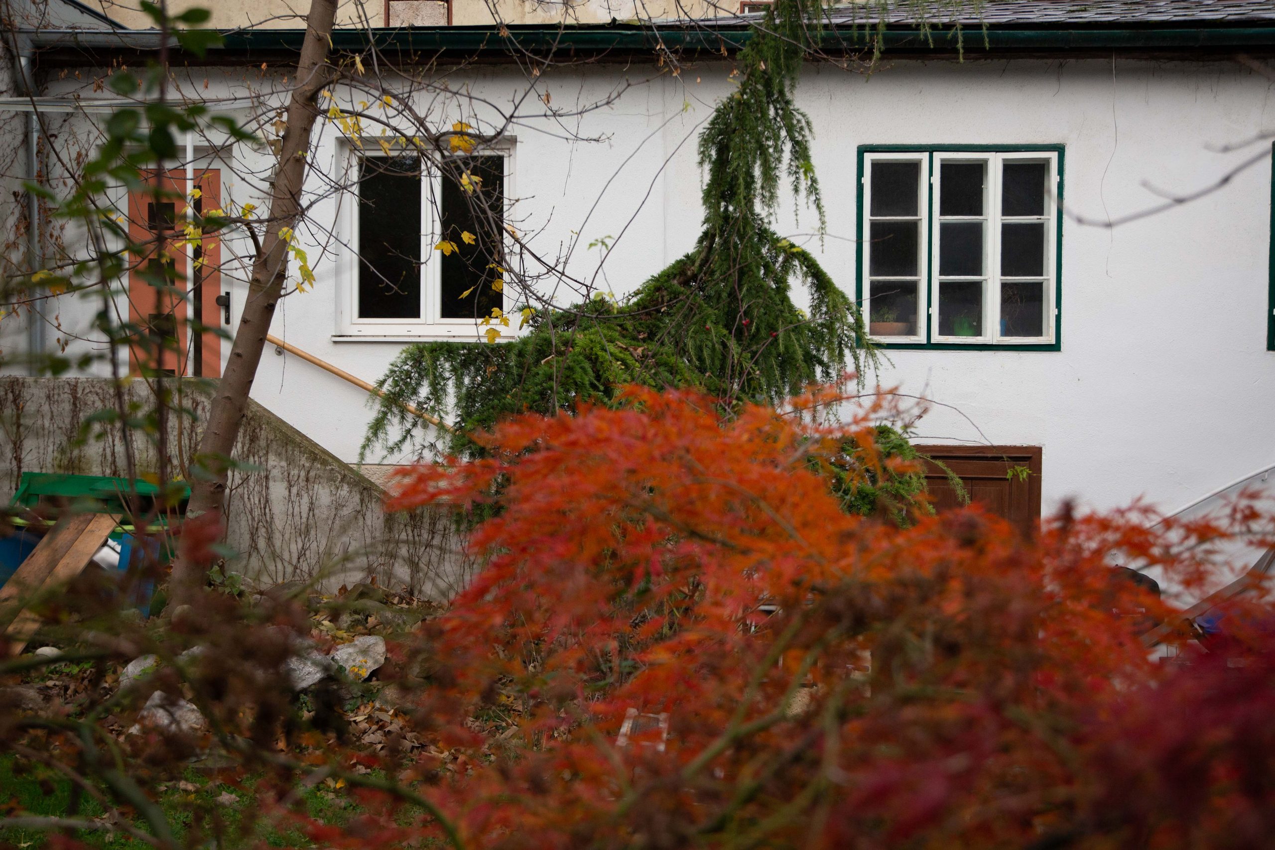 Um die Wohnqualität des nach Südwesten versetzten Wohnraumes zu erhöhen, eröffnen zwei große fast quadratische Fenster den Blick über die gesamte Tiefe das Grundstückes. Ein Bestandsfenster wird durch eine Terrassentür ersetzt, um einen direkten Zugang von der Wohnküche in den ca. 60cm tiefer gelegenen Garten zu ermöglichen. Die ursprüngliche Eingangstür wird lediglich durch eine Terrassentür ersetzt. Alle anderen Fenster bleiben unverändert.